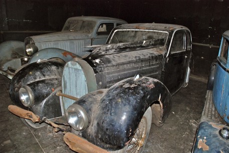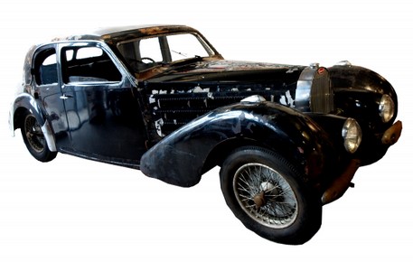 Im unberührteren Zustand seit Auslieferung kann derzeit ein historischer Bugatti nicht originaler sein! Unangetastet seit 1938*! Erstmalig tauchte dieseses Fahrzeug in der Fundstelle „Schlumpf Reserve Sammlung“ Malmerspach (Bild 3) auf. Später war er dann Teil der Ausstellung „Schlumpf Reserve Collection“ im Mullin Museum (USA). Schließlich kam der Bugatti, verschifft im Container, nun wieder zurück nach Europa - diesmal direkt ins Museum AUTOVISION. Hier darf er - geschützt vor weiterem Zerfall - eingereiht in die Nachbarschaft der restaurierten Bugatti T57 Fahrzeuge - im unrestaurierten Originalzustand stehen.